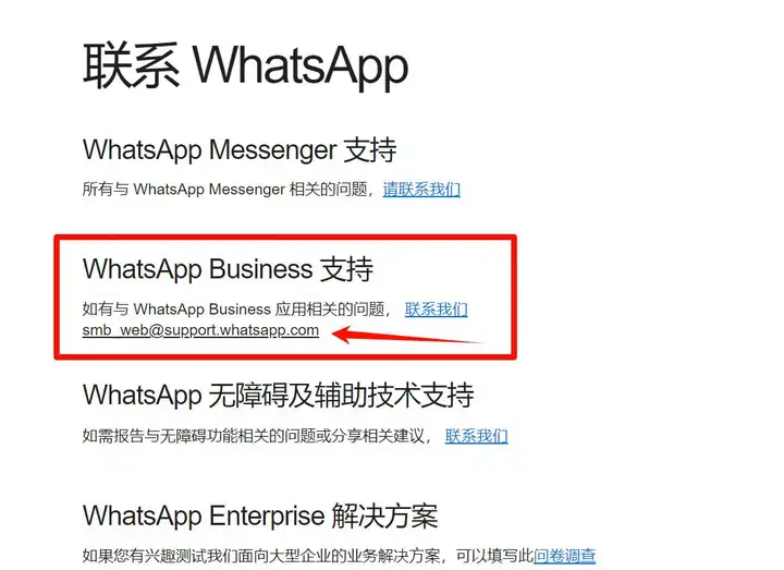 如果您是商业用户,那就应进入 WhatsApp Business 的申诉,WhatsApp官方会提供这个特定的电子邮件地址供您发送申诉:smb_web@support.whatsapp.com,您需要发送申诉邮件到这个邮箱,然后等待WhatsApp官方审核。